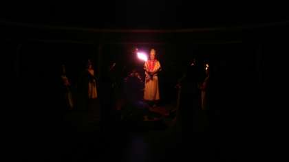 火の神が現れ、みんなで火の神に頑張ることを誓い、大切な5つの火をいただきました。