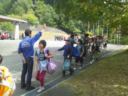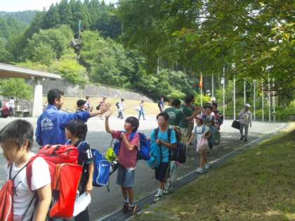 花背山の家の先生方がハイタッチで見送って下さいました。