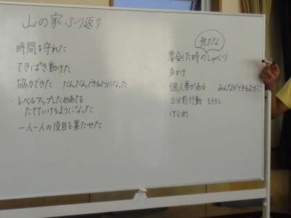 4泊5日の山の家を終えました。3連休をはさみ,数名の欠席者はいましたが,ひとまわり成長した顔つきの子どもたちが揃いました。5日間をふり返り,みんなで達成感を味わうことができました。しかし,積み残した課題も明らかに・・・。それは,これからの日常の中で,さらには運動会に向けた取り組みの中で改善を図っていこうと決意を新たにしました。