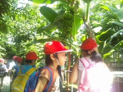 めずらしい植物がたくさんありました。バナナやパイナップルの実には歓声があがっていました。