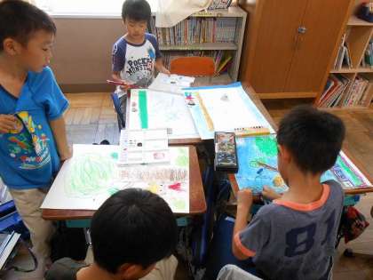 2年生では「物語を絵に描く お話の絵」という題材で図工の学習に取り組んでいます。