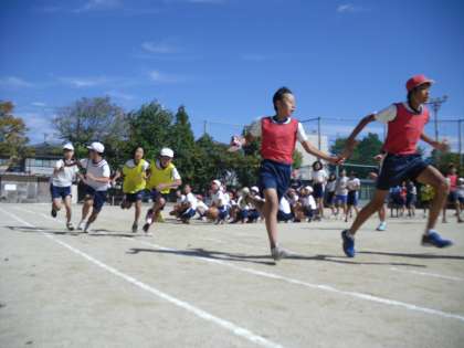 さすがにバトンのリレーも慣れたもので,走りも迫力がありました。運動会当日に勝つのはどのチームでしょうか?