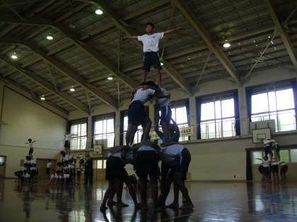今日は運動場での通し練習もありましたが,その様子は当日のお楽しみとして,体育館での練習の一部をお見せします。