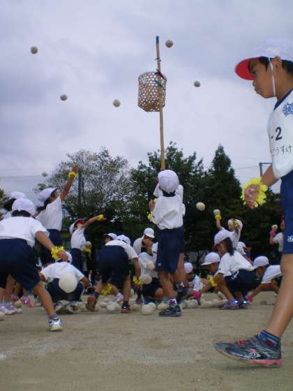 玉入れもがんばりました。結果は,赤組の勝ちでしたが,白組もがんばりました。