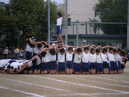 本日の花形とも言える6年生の組体操。今日の日のために,練習を積んできました。はじめは,なかなかうまくできなかった技も,どんどんできるようになりました。