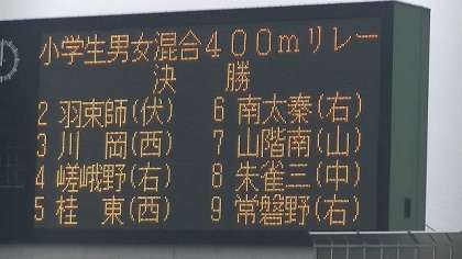 11月3日に行われた市民スポーツフェスティバルの小学生男女混合リレーで,桂東学区代表が優勝しました。