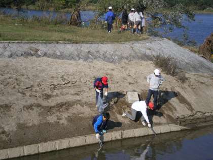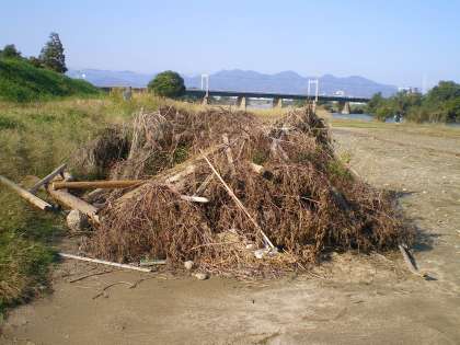 桂川の河川敷の清掃は,今日は6年生が担当でした。流木が山積みになっているところがあったり,大木が倒れたままになっていたりと,台風18号の爪痕がまだ少し残っていますが,以前と変わらないきれいな河川敷へと戻りつつあります。