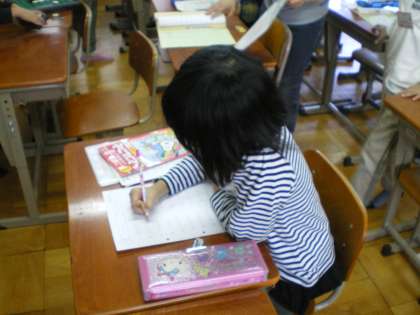 早速,一人ひとり,所定の場所から作業プリントを取ってきて,取り組んでいました。