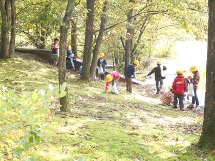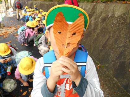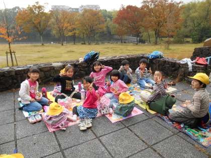 大蛇ヶ池公園に着いてからはお天気も回復し,みんなで楽しくお弁当を食べ,どんぐりやきれいな落ち葉を拾うことができました♪