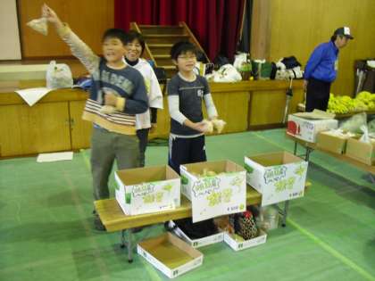 小学校からは,学校で収穫した銀杏の実をフリーマーケットで販売しました。栽培委員会の子どもたちが,お手伝いをしてくれたおかげで,用意していた150袋すべて完売しました!売上金で花壇に植える花を買います!