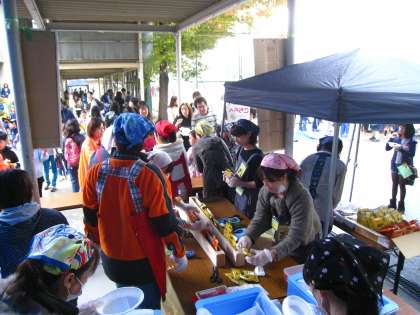 毎年,桂東校区からは,地域やPTA,保護者の皆さんが,フランクフルト・お茶やジュース・みたらし団子・バナナ・綿菓子(今年は,悪天候のため中止になりました)・カレーライスなどの販売をされています。また,場内の整理や警備・救護・ごみの分別など,様々な場所で祭りが滞りなく行われるように,たくさんの方が携わってくださいました。