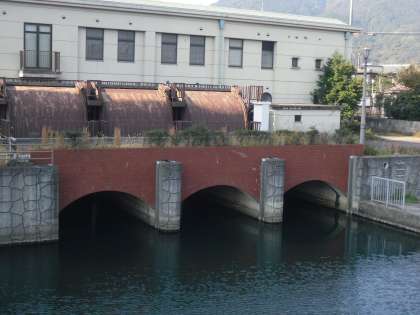 皆の体調が心配されましたが,元気に出発できました。まず最初は大津の琵琶湖疏水取水口を見学しました。みんな「これか〜」と教科書ではなく実物を見て驚いていました。