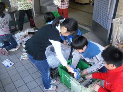 最近は保護者の皆さんや近隣の地域の皆さんにも知られるようになり,アルミ缶も牛乳パックもかなり集まるようになっています。しかも簡単に洗ったり,干して開いたりと回収方法も皆さん協力していただいています。
