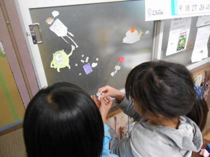 素敵な教室になるように,かわいい飾りを作ってくれています。