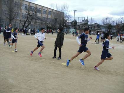 16日も寒い1日でした。大文字駅伝に出場する14名は決まりましたが,今日は区間を決めるためのタイムトライアルの1回目が行われました。