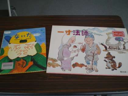 今回は,「一寸法師」の紙芝居と「ないた」という絵本を読んでくださいました。