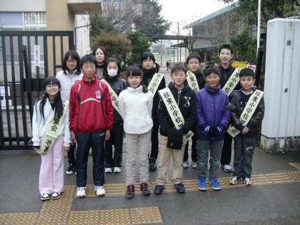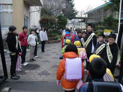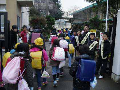 今日は5年生が科学センター学習のため集団登校よりも早く学校を出発しました。5年生が登校班の班長をしている班は,4年生や3年生が緊張気味に先頭を歩いて登校して来ました。4月からは本当に班長さんをする子もいるでしょうし,よい練習になったかもしれませんね。