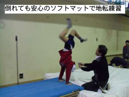 いろいろな場所で練習をしていくうちに、運動の要点(コツ)をつかんで、平らなマットのところでもできるようになっていきます。