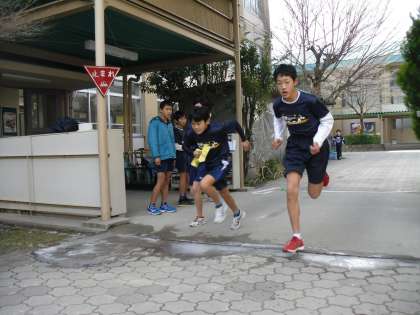 下見から帰った子どもたちは,本選を想定し,タスキを使って運動場でタイムトライアルをしました。