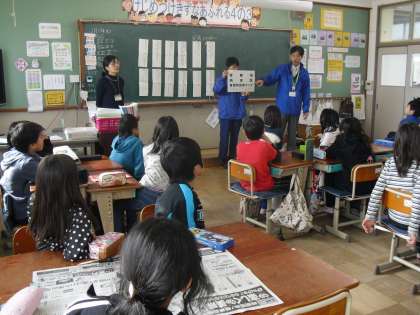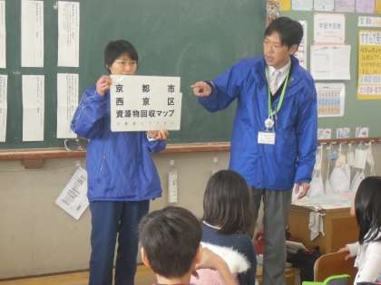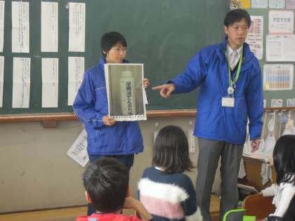 使用済みの天ぷら油の回収について,区役所の方から教えてもらいました。油もリサイクルできるんだ!と驚いていました。