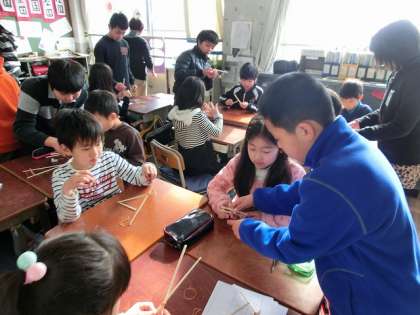 5年1組では,ゴムパチを作り,割り箸を使い,的に当てるのが楽しかったです。