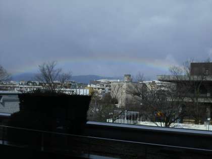 天候が心配された9日でした。朝の内は小雨が残りましたが,スタート直前にはきれいな虹も出て,第28回京都市小学校「大文字駅伝」大会は予定通り行われました。