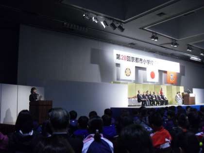 閉会式では,京都市長さん,教育長さんをはじめ多くの来賓の方が見守る中,桂小学校の金管バンドの演奏があり,アナウンスコンクールで優秀な成績だった嵯峨小学校の児童のアナウンスによる成績発表がありました。