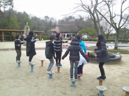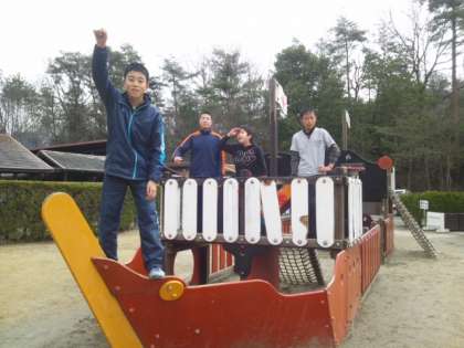 早く戻ったグループの中には遊具で遊ぶグループもあります。