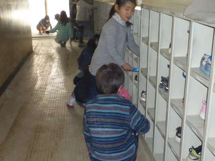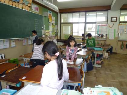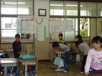 掃除の仕方も,上手になりました。机を拭く人,床を掃く人,床をふく人,分担して頑張っています。