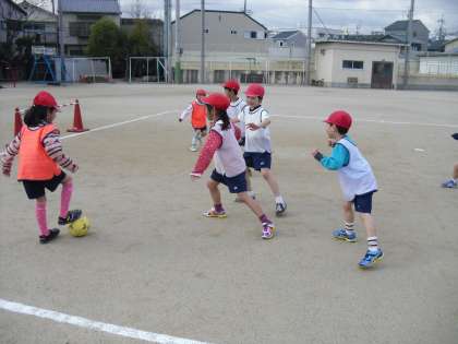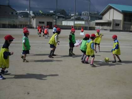 ボールに近づきすぎてうまくパスを回せなかったり,みんなでボールを追いかけてだんご状態になってしまったりしていましたが,初めての試合はとても楽しかったようです。