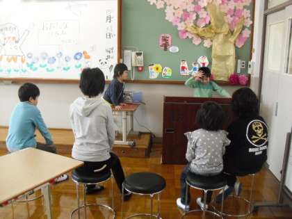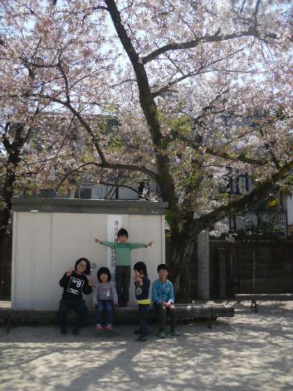 5組の全員がそろっての1日目。それぞれの交流学年の集会に参加したりで,じっくり5人そろう時間が少なかったですが,教室に入ると自分から,自己紹介をして「よろしくおねがいします」と声をかけあったり,似顔絵を描きあったり,なかよくしようと自分たちが意識し合って、あたたかい時間が過ごせました。桜の木の下で記念写真をたった後,花弁を使って花笛をふいたり,花吹雪の中遊具を使って遊び,楽しく1日目を終えることができました。