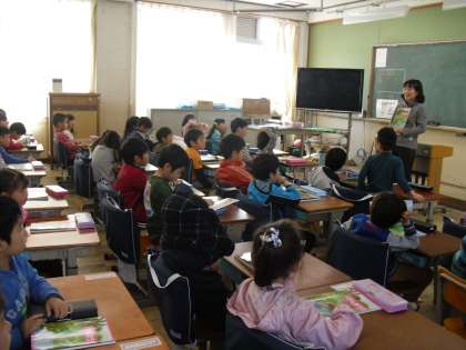 先生のお話をしっかり聞いて,元気よく手を挙げて発表もしていました。
