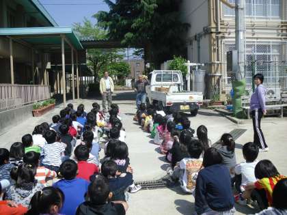 毎年地域でお世話になっている井上さんに教えていただきながら,ひょうたんの苗植えをしました。