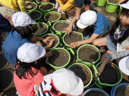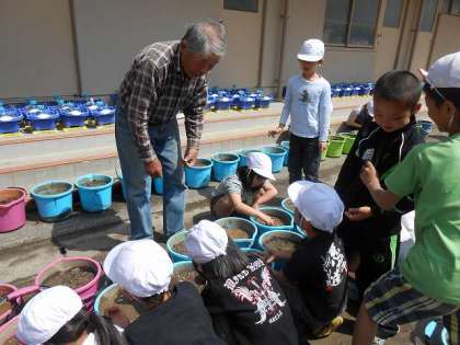 今日も,昨日に引き続きバケツイネの世話に取り組みました。