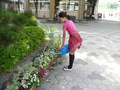今朝も栽培委員会がプランターの水やり,飼育委員会がウサギとインコの小屋の掃除と餌やり,環境委員会がアルミ缶と牛乳パックのリサイクルに取り組んでくれました。これからは朝から暑い日も増えますが,とても大切な当番です。