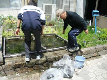 メダカの池をきれいにしていただきました。