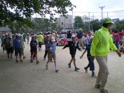 運動場で校長先生から始まりの挨拶を聞いた後,学年ごとに清掃場所に移動しました。