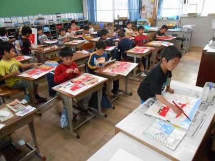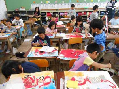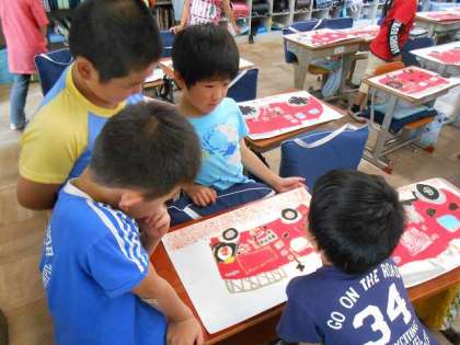 今日は消防車の色を塗り,仕上げをしました。