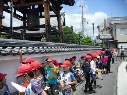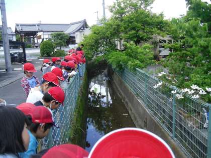 5月21日(水)朝の雨で,少し迷いましたが校区探検に出かけました。子ども達は,少し興奮気味でとっても賑やかでしたが,地図を見ながら「あっ,今ここや。」「先生,今どこにいるかわからへんわ。」「お寺の地図記号は,どんなんやったかな。」と,しっかり学習していました。来週も校区探検に出かける予定です。いいお天気になってほしいと願っています。
