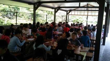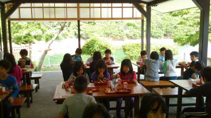 風が強いため,深谷水道沿いのテーブルではなく,野外炊事場の屋根のあるところで食べました。おかげで「トビ」に食事を狙われる心配はありませんでした。