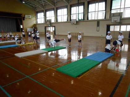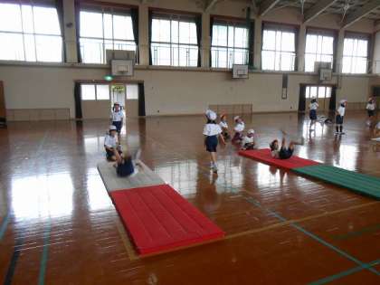 今日からの体育はマット遊びです。