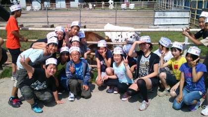 乳しぼりの後は、子牛やポニーとふれあいました!