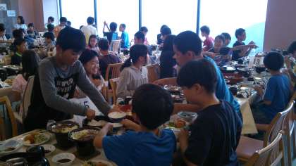 窓からは美しい夕陽をあびた瀬戸内海が一望でき、みんな思わず拍手喝采でした!