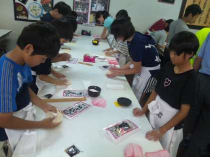 切ったうどんが固まらないようにうどん粉をふりかけ、出汁と共に袋に入れれば、手打ちうどんの完成です。