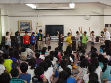 各ブースの代表者があいさつした後,スチューデントシティの区長からのあいさつです。みんな,大勢のメンバーの前でしたが,考えながら自分の言葉であいさつすることができました。いよいよ各ブースに移動です。