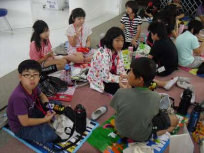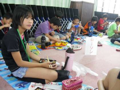 昼食の時間です。この時ばかりはほっと一息。午後に向けて少し休憩をしました。