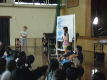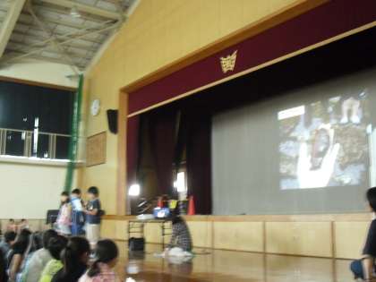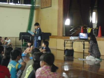 潮の満ち引きのしくみや,磯観察で見つけた生物,星空や星座のこと・・・普段の生活では体験できないたくさんの自然に触れ,感じたことや学んだことを全校に伝えました。