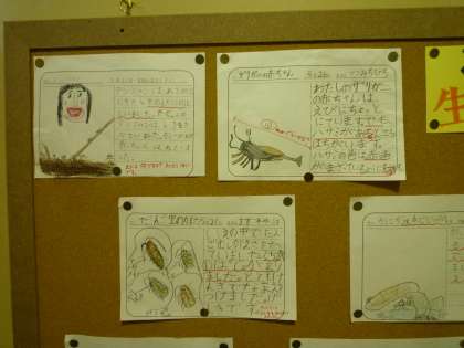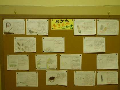 みんな一人一匹ずつ生き物を育てて観察をしました。「けんこうかんさつ」をしようと,毎朝い生き物の「動き・体の作り・えさ・うんち」などを観察して記録しました。