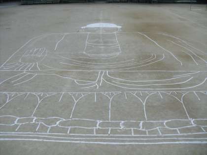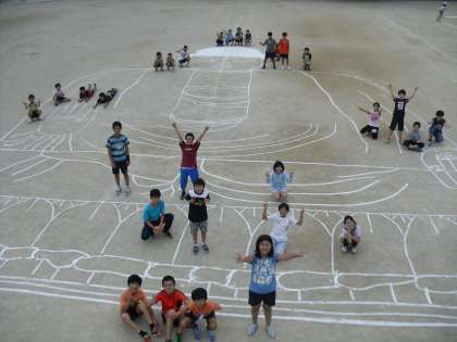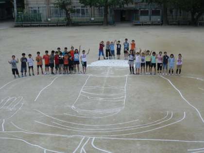 大仏を運動場に描きました。各パート別に分かれ,メジャーで測って描きました。平面ですが大きな大仏にみんなびっくり。みんなで総合遊具の上から眺めました。社会見学では実物を見に行きます。楽しみですね。