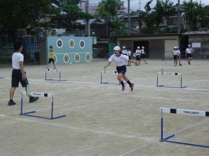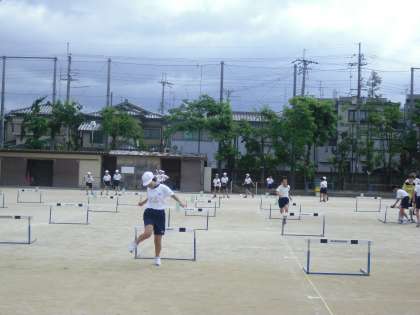 体育でハードル走をしています。もうすぐ水泳学習に入るので,ハードル走パート1です。